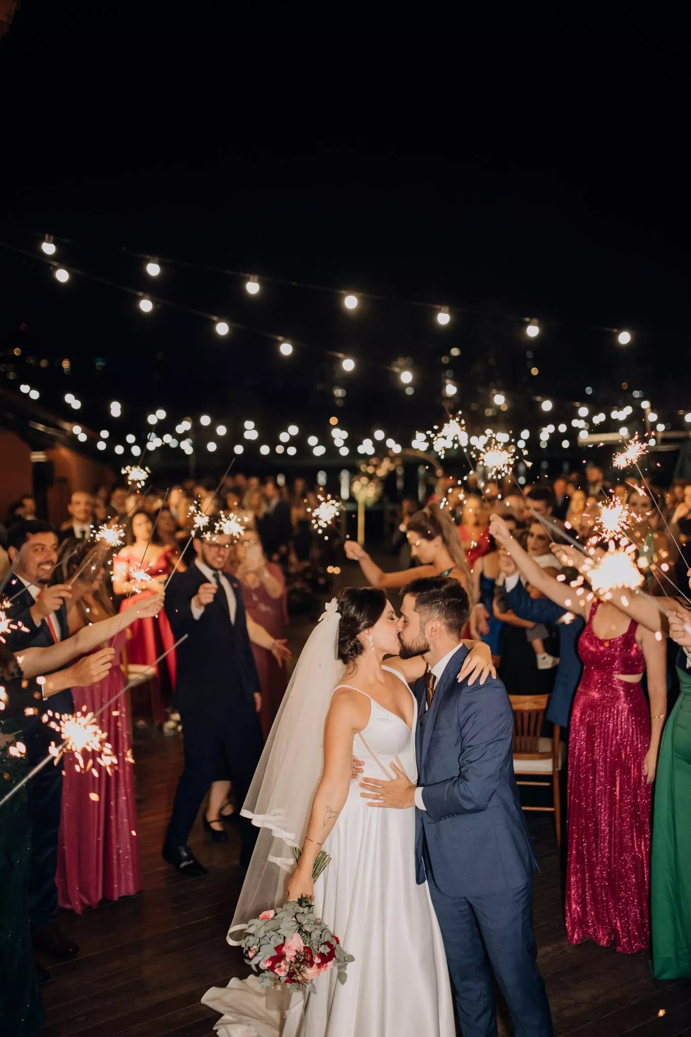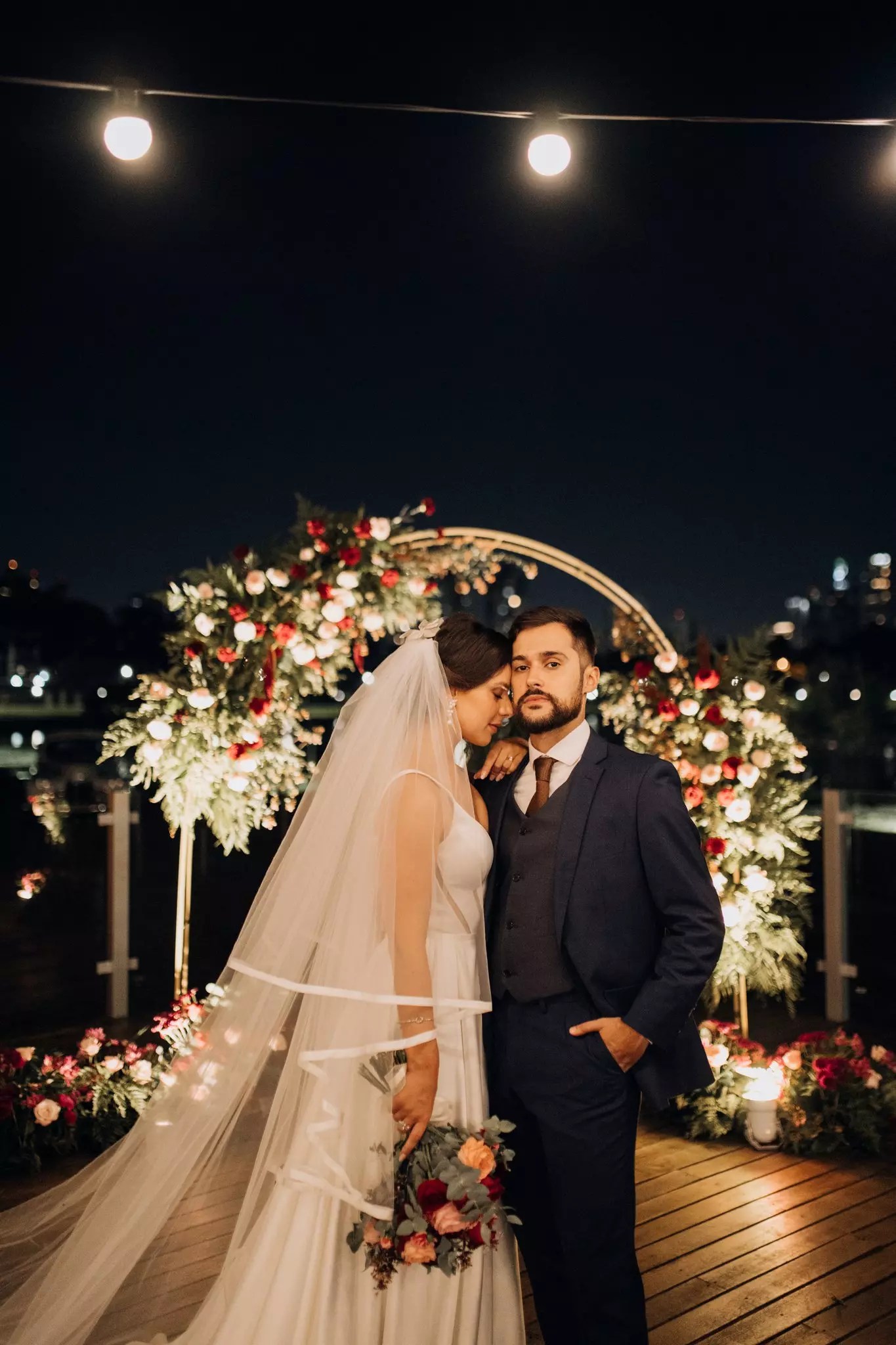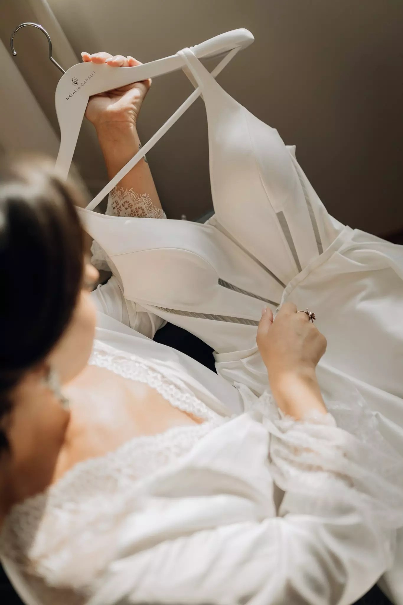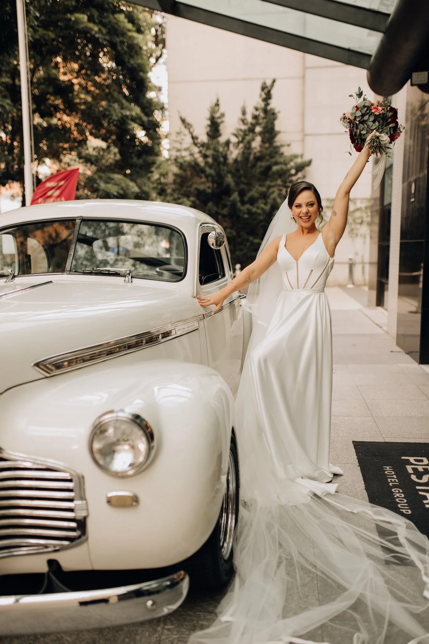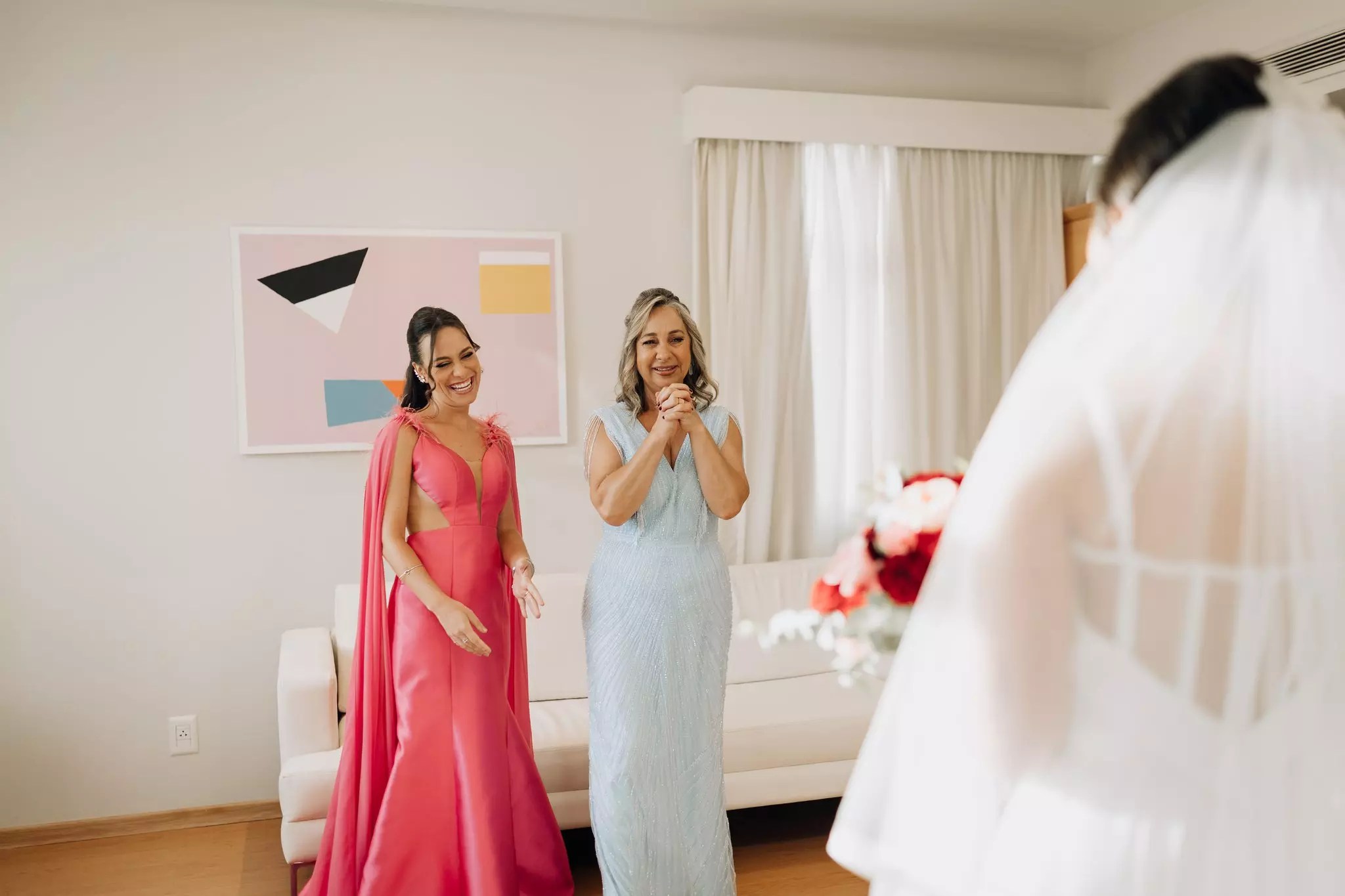 Ana ficou maravilhosa no Vestido Pérola, com recortes simétricos e transparência inesperadas, esse vestido clean transmite elegância. A sobre-saia do Pérola permite uma transformação em segundos de um vestido evasê para um sereia. Perfeito para as noivas que buscam uma troca de look para a cerimônia e a festa como fez a Ana.